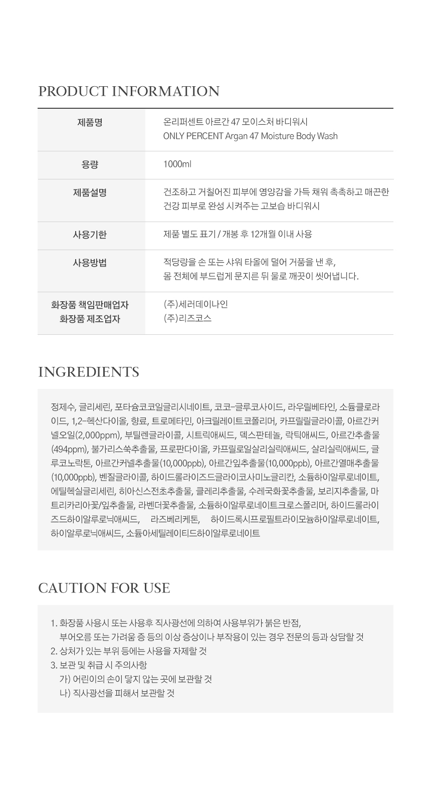 온리퍼센트 아르간 47 모이스처 바디워시 1000ml