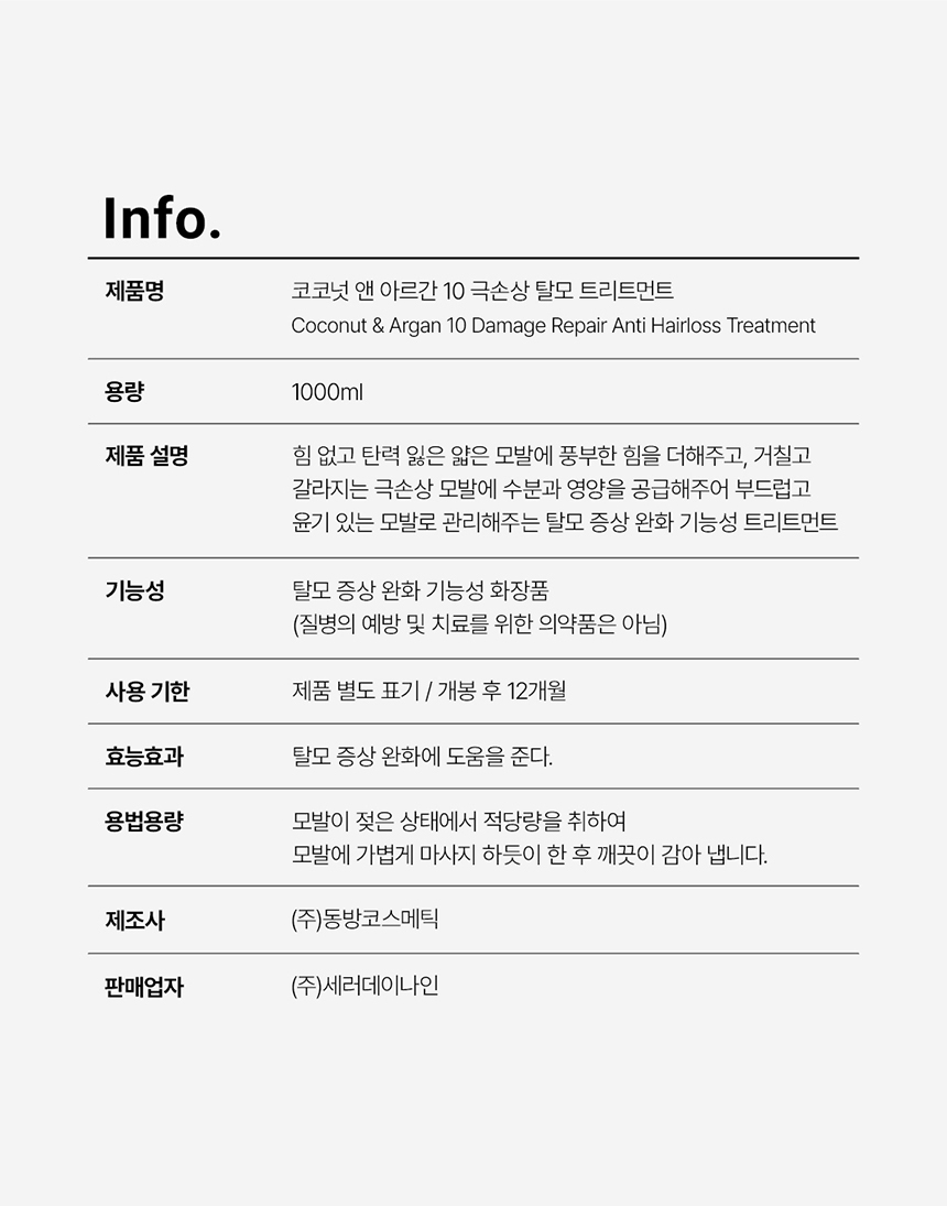 메디레머디 코코넛 앤 아르간 10 극손상 탈모 트리트먼트 1000ml