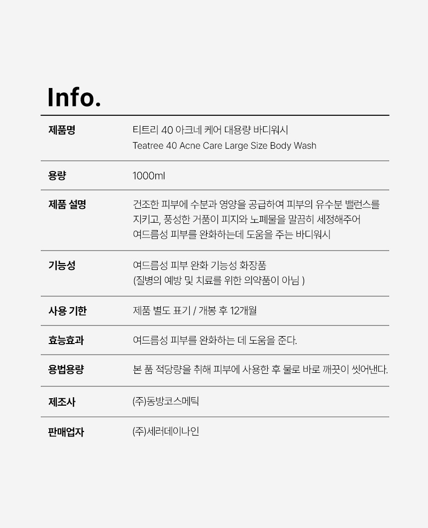 메디레머디 티트리 40 아크네 케어 대용량 바디워시 1000ml