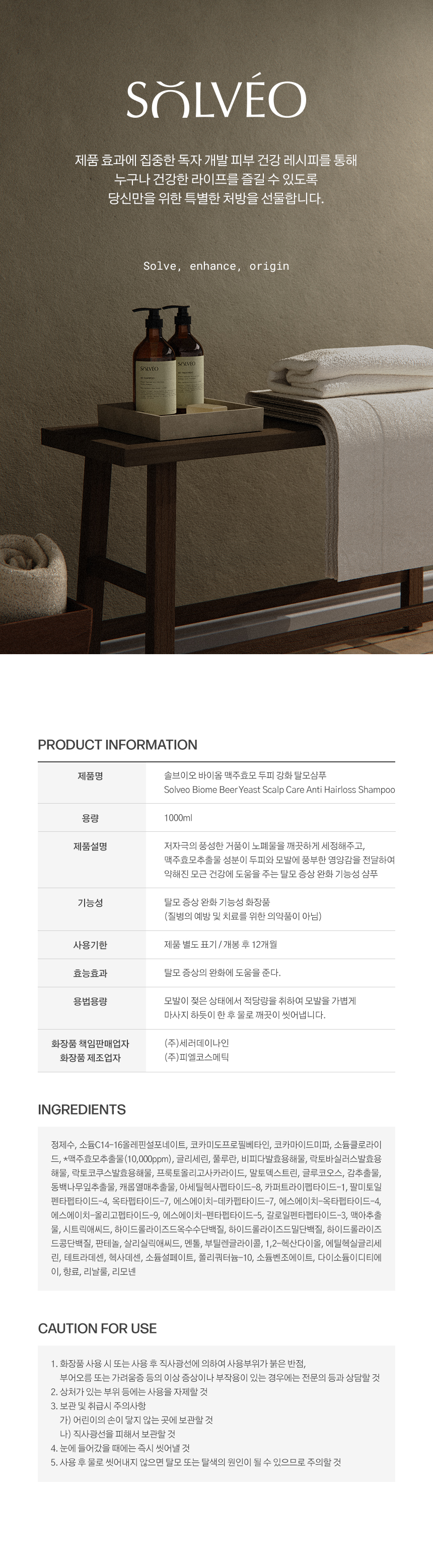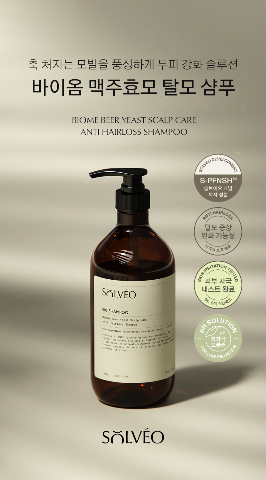 솔브이오 바이옴 맥주효모 두피 강화 탈모샴푸 1000ml