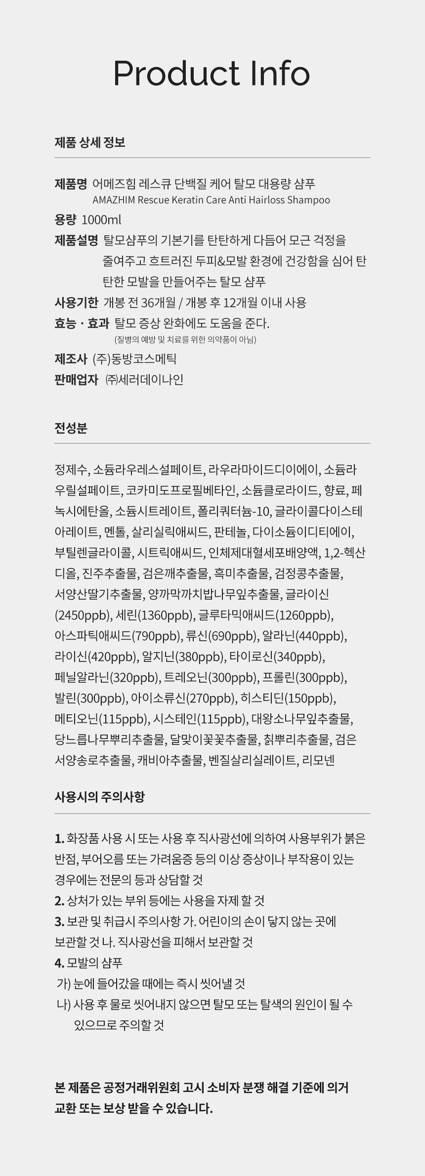 어메즈힘 레스큐 단백질 케어 탈모 대용량 샴푸 1000ml