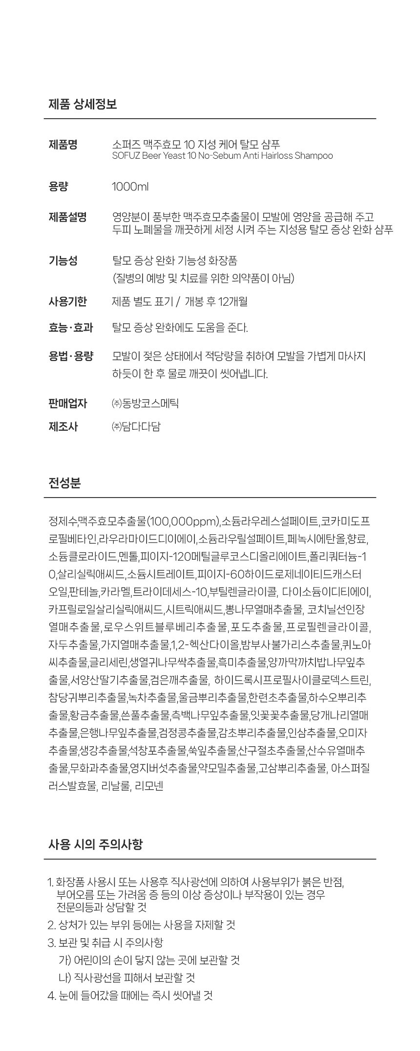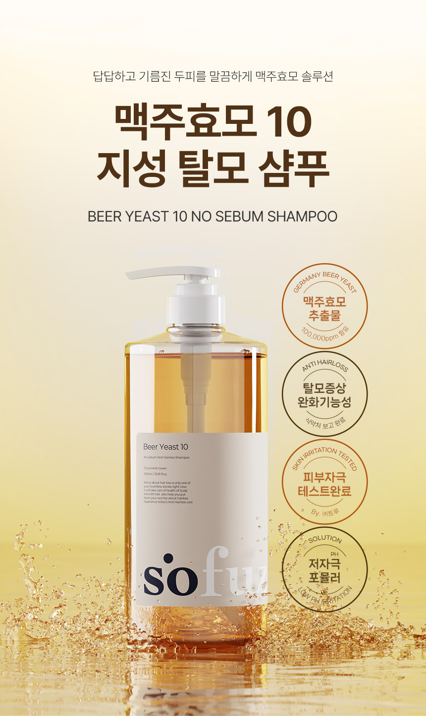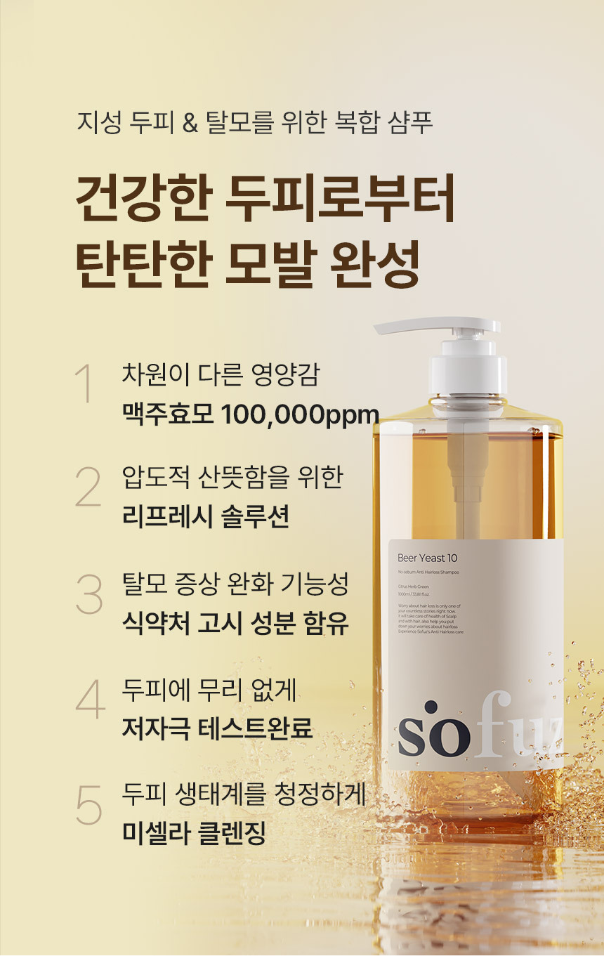 소퍼즈 맥주효모 10 지성 케어 탈모 샴푸 1000ml