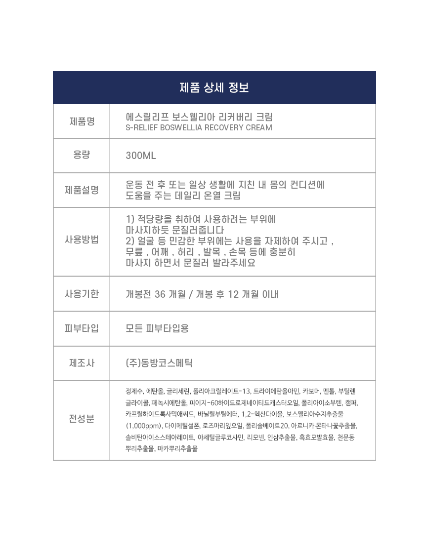 에스릴리프 보스웰리아 리커버리 크림 300ml