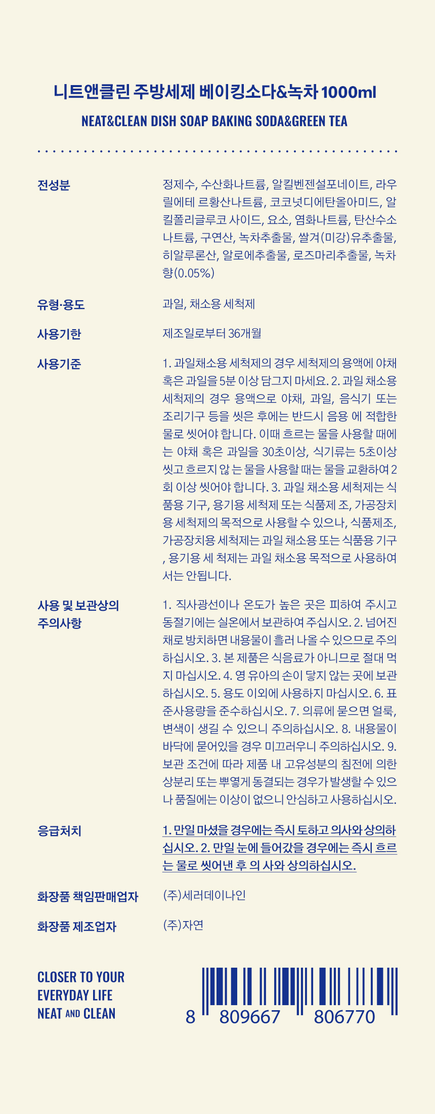 니트앤클린 주방세제 베이킹소다&녹차 1000ml