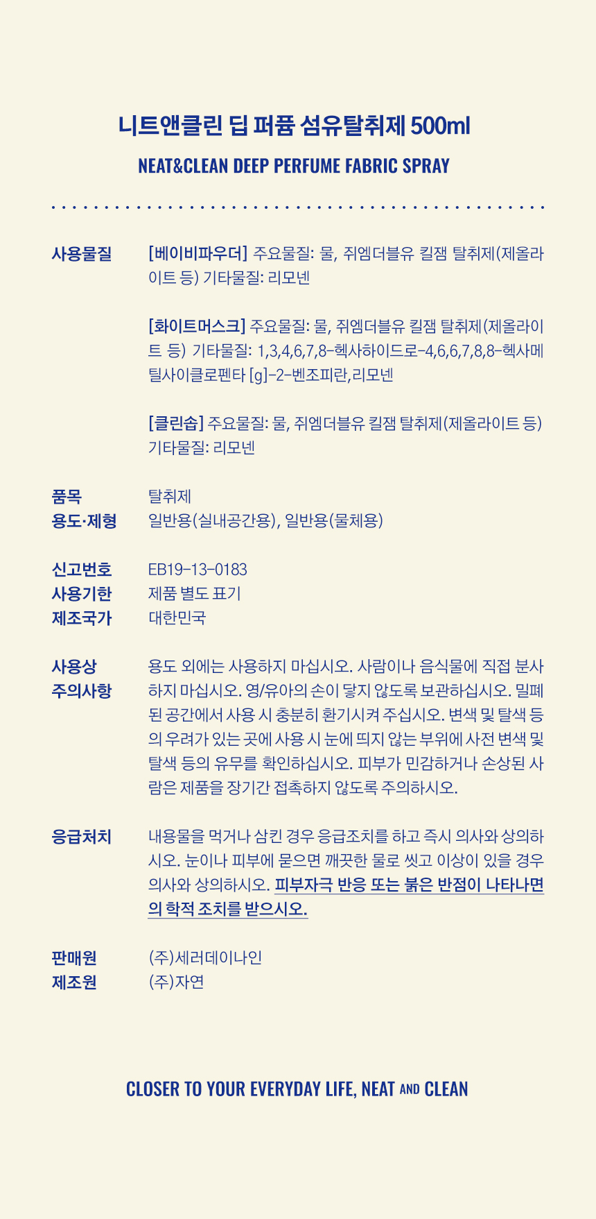 니트앤클린 딥 퍼퓸 섬유탈취제 500ml [3가지향]