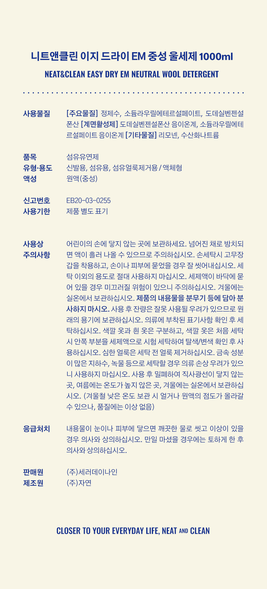 니트앤클린 이지 드라이 EM 중성 울세제 1000ml
