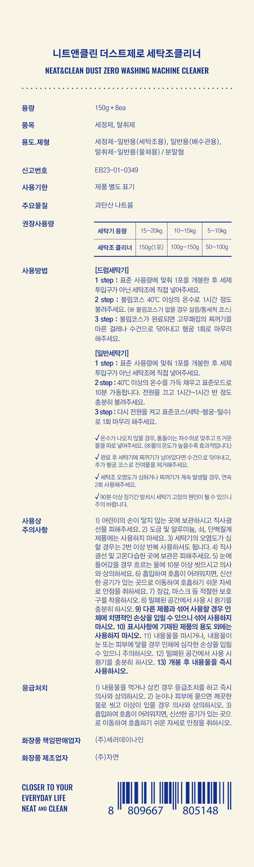 니트앤클린 더스트제로 세탁조 클리너 1박스 (8개입)