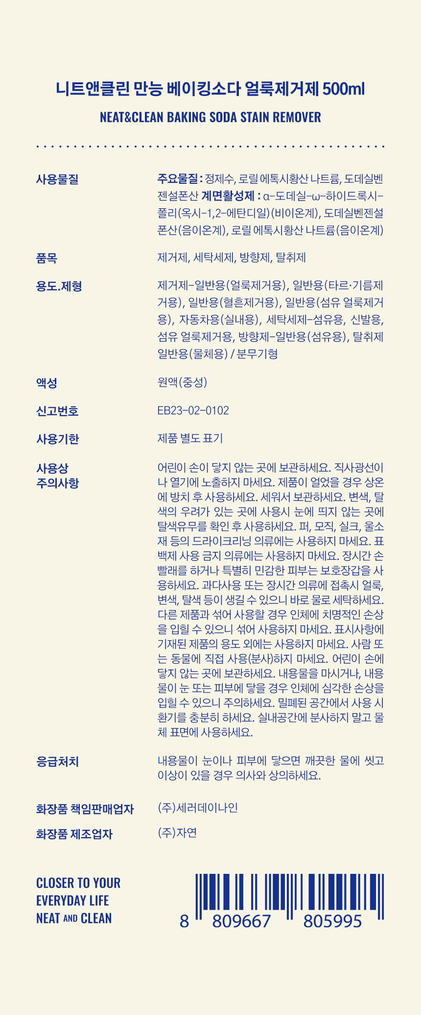 니트앤클린 만능 베이킹소다 얼룩제거제 500ml